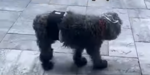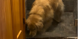 I en video, der hurtigt har fået tusindvis af mennesker til at grine, kan man se den søde hund marchere hen til et hjørne og sætte sig med et udtryk, der emmer af skyld.