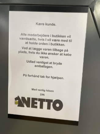 Netto håber med den opsatte seddel at få kunderne til at tænke sig om, før de roder i butikken.