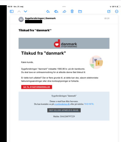 “Nylig har Sygeforsikringen “danmark” implementeret et nyt it-system, og svindlere udnytter dette til deres fordel.