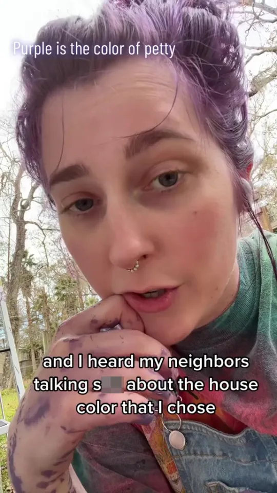 I videoen afslører hun, hvordan naboklageren specifikt tog fat på husets farvevalg, hvilket motiverede hende til ikke blot at fortsætte malingen men også at introducere en ekstra farve til paletten.