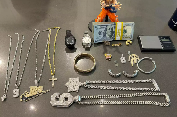 Ved ransagning af én af de mistænktes telefon fandt politiet flere billeder, hvor de sigtede poserer med de stjålne genstande – herunder designertasker, smykker og kontanter.