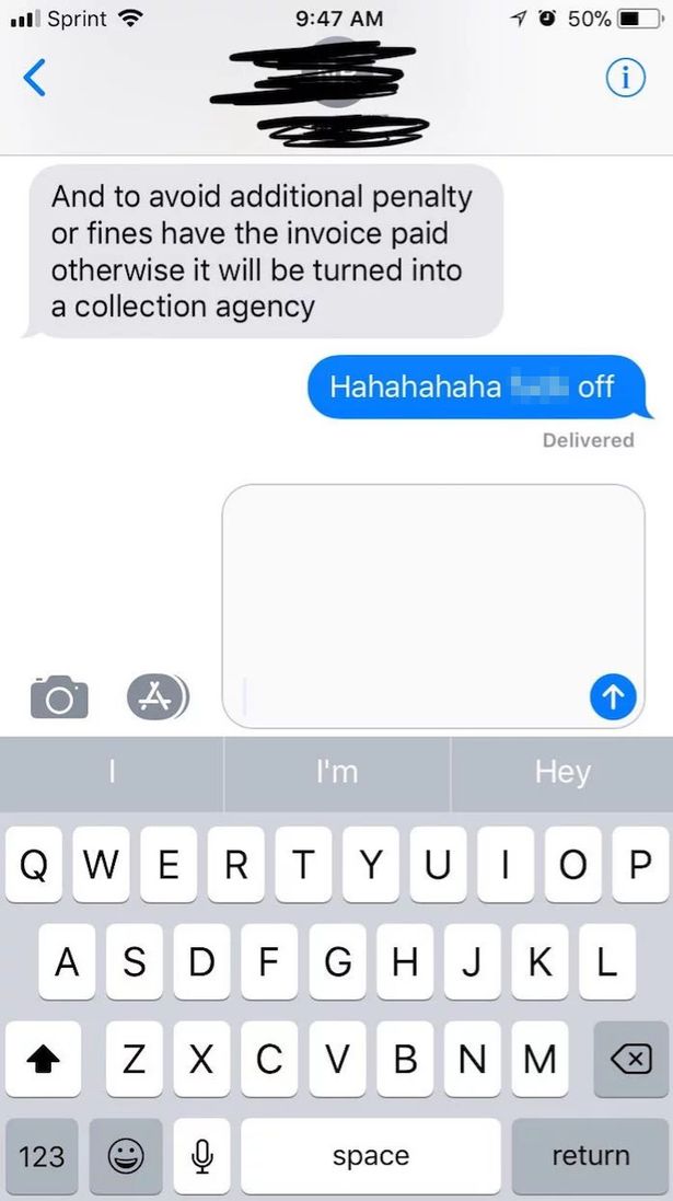 Ikke nok med det, sendte manden hende også en sms, hvor han insisterede på, at hun skulle betale, ellers ville regningen blive sendt til inkasso.