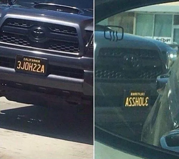 For nylig cirkulerede billeder af en bil i Californien, USA, med præcis den samme kombination af tal og bogstaver på nummerpladen. Billederne blev delt på det sociale medie Reddit.