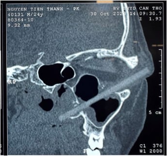 Dybt i øjenhulen gemte sig et fremmedlegeme på hele 7,6 centimeter. Genstanden havde beskadiget vævet omkring øjet og strakt sig helt ind i bihulerne.