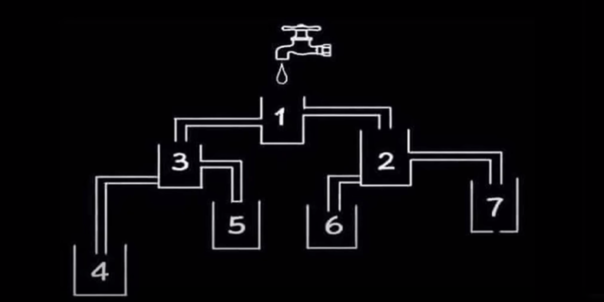 Testen viser en situation med en åben vandhane og en række glas placeret på forskellige højder og i forskellige positioner. Deltagerne udfordres til at bruge deres logiske sans og hurtigt finde ud af, hvilket glas der først vil modtage vand. Det er en test af din evne til at analysere, forudsige og anvende kritisk tænkning i praksis.