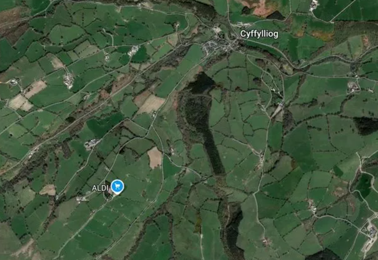 Blandt de mest delte billeder er turister, der står på en øde mark med indkøbskurve og skilte i landsbyen med teksten “Velkommen til Cyffylliog. Ingen Aldi her. Prøv Denbigh.”